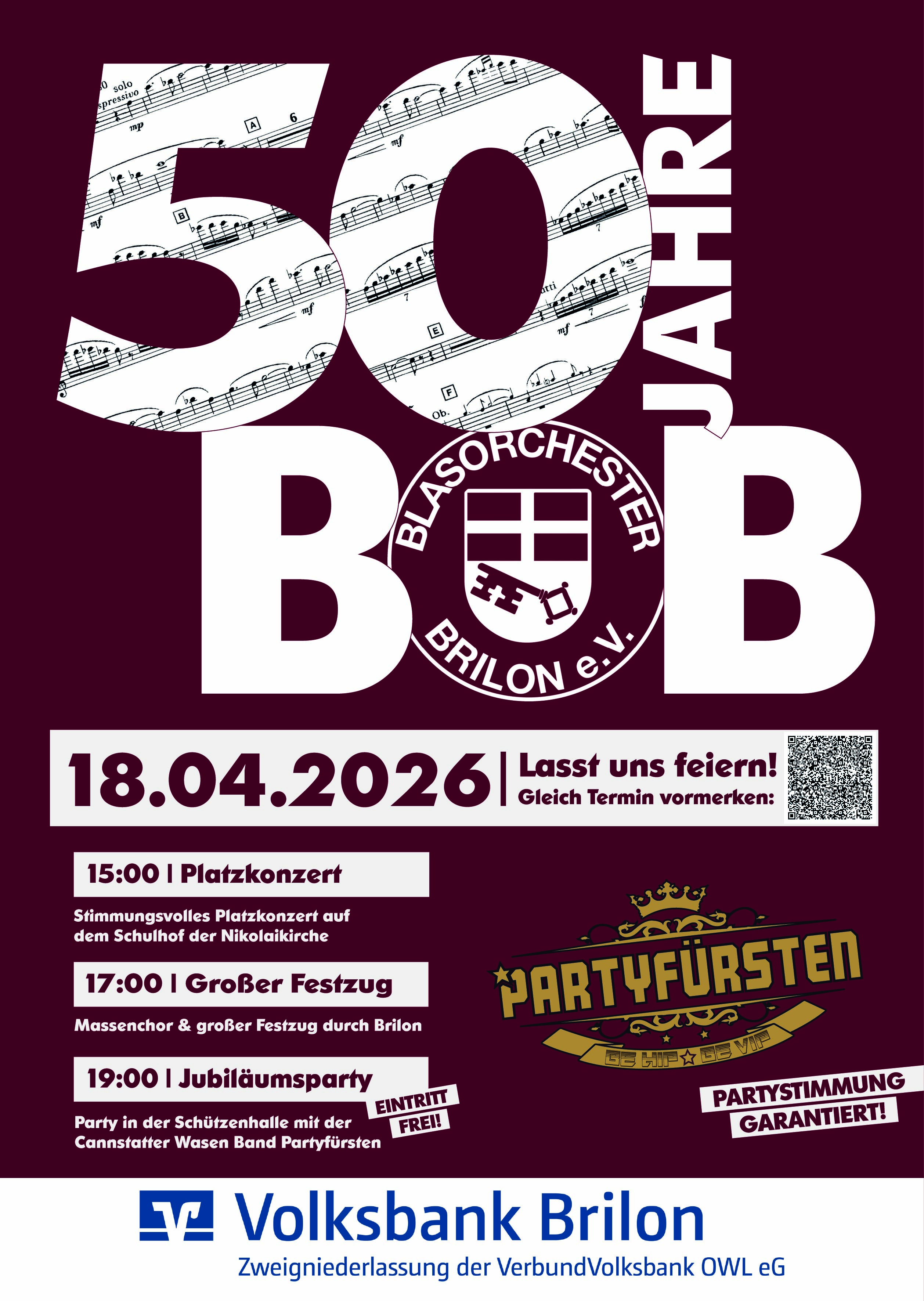 50 JAHRE BLASORCHESTER BRILON – SAVE THE DATE – 18.04.2026!